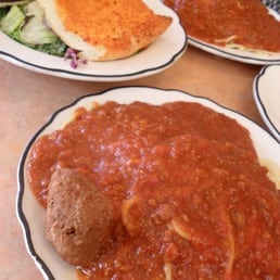 This place is no longer an Italian Restaurant. Italians do not make this food. Recipes have been lost - awhile ago. The sauces are sweet.It reminds me of high school cafeteria food or food that is provided to a food bankThe shrimp tastes canned. The meat balls taste strange like a liver pate. The salad is drowned in mayo.It is Nostalgic of a time past with large portions. It is food. If you are looking for Italian food, this is not the place to eat. I am sad. We could not eat our foodThe San Peligrino drinks are the only Italian items here. So Sad. Helpppp!!!I am going to Ralphs for dessert!